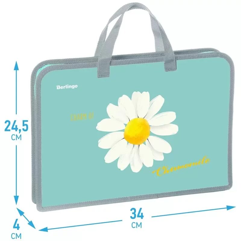 Папка с ручками 1 отделение, А4 Berlingo Chamomile, 340*245*40мм, пластик, на молнии, PTA44037/336623